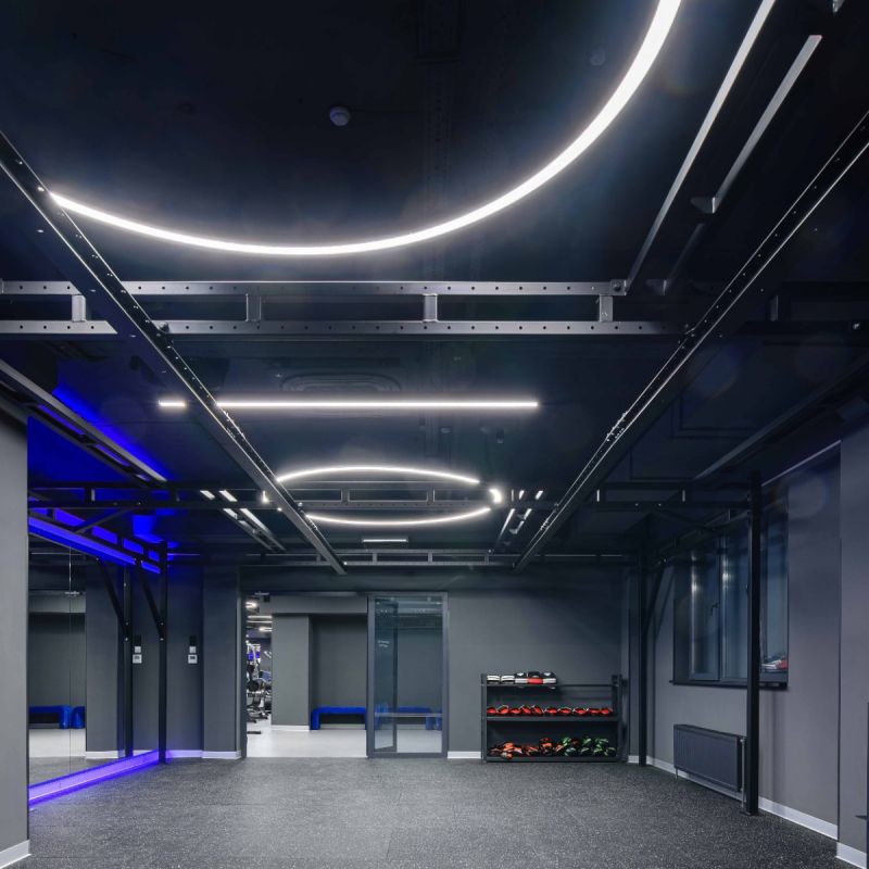 Оптимален для просторных и протяжённых помещений: основного тренировочного пространства с грузоблочными и нагружаемыми тренажерами, длинных коридоров. Светильник отлично сочетается с кругами и полукругами диаметром 2,5 м, а так же легко выстраивается в единую линию и даёт мощный, энергоэффективный свет: 4000 К – оптимальный выбор для концентрации и точной цветопередачи. Естественное освещение подчёркивает натуральные оттенки кожи, отлично подходит для фото- и видеофиксации тренировки и не создаёт бликов или искажений, что особенно важно в тренажёрных залах.