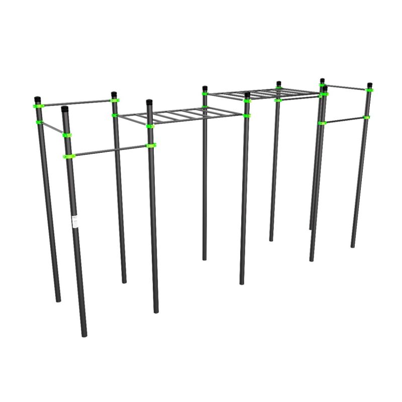 Двухуровневый классический рукоход с шестью турниками на разной высоте подходит для упражнений на силу хвата, плечевой пояс, мышцы спины и пресса, а также для функциональных тренировок с собственным весом. Многофункциональный комплекс обеспечивает полноценную тренировку нескольких атлетов, при этом экономит пространство.