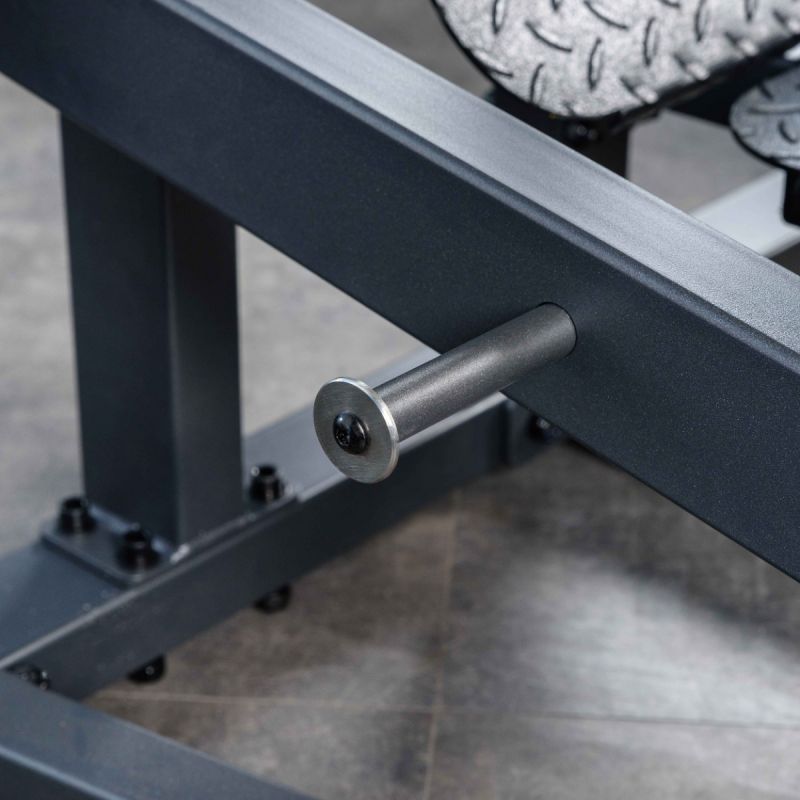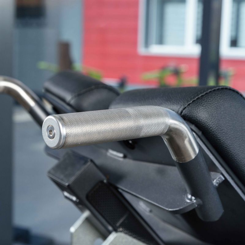 - В зоне опоры корпуса установлены две металлические рукояти диаметром 30 мм и длиной 125 мм с ромбовидной накаткой для удобного хвата при регулировке положения подушек и размещении спортсмена. Торцы рукоятей закрыты металлическими заглушками с болтовой фиксацией.
