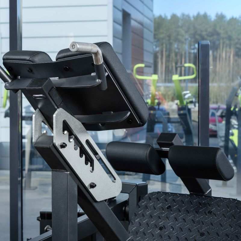 Профессиональный тренажёр Гиперэкстензия нагружаемая для развития ягодичных мышц, задней поверхности бедра и поясничного отдела. Механика с подвижным рычагом и регулируемой нагрузкой делает тренировку безопасной, контролируемой и эффективной даже при работе с большим весом. Возможность подключения эспандеров позволяет плавно увеличивать сопротивление и адаптировать нагрузку под уровень подготовки. A627 – новое поколение гиперэкстензий, сочетающее функциональность, комфорт и продуманную биомеханику для профессиональных тренировок.