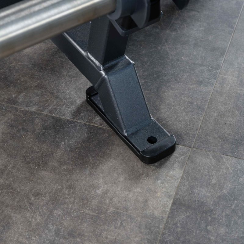- Опорные элементы оснащены прямоугольными резиновыми подпятниками с отверстиями для фиксации к полу. Такая конструкция гарантирует устойчивость оборудования, равномерное распределение нагрузки и защиту покрытия от повреждений.