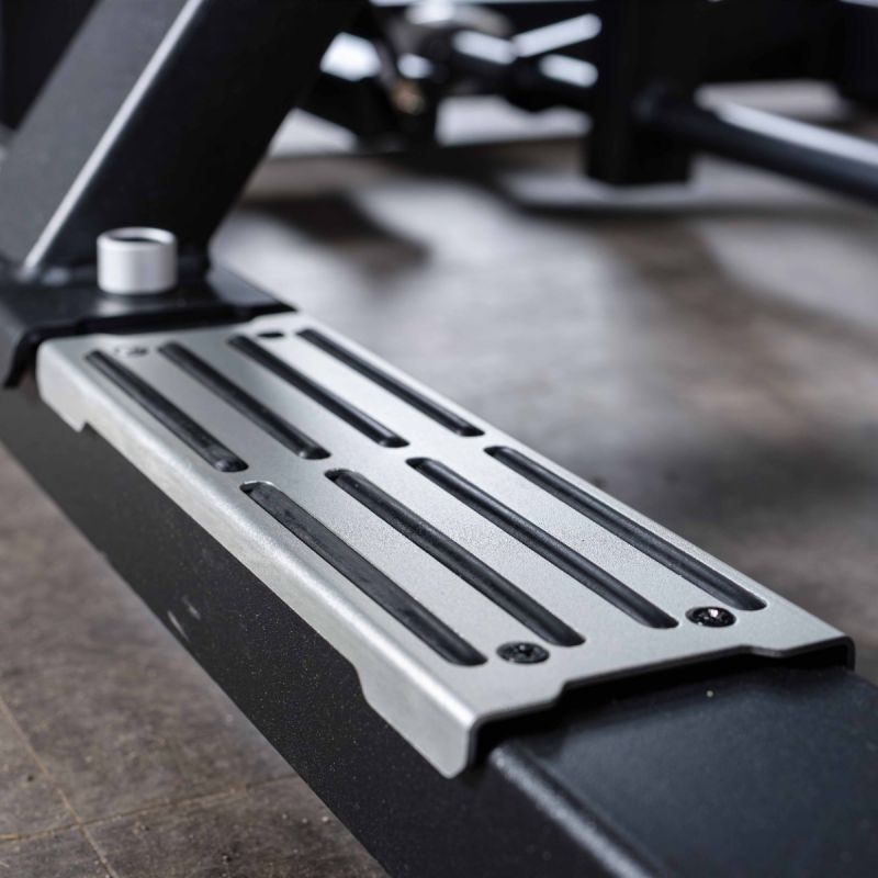 - Тренажер оснащён системой лёгкого старта при помощи ножного рычага, выполненного из прямоугольного профиля, и педали, выполненной из металлического прутка с дополнительной декоративной защитой из алюминия.
