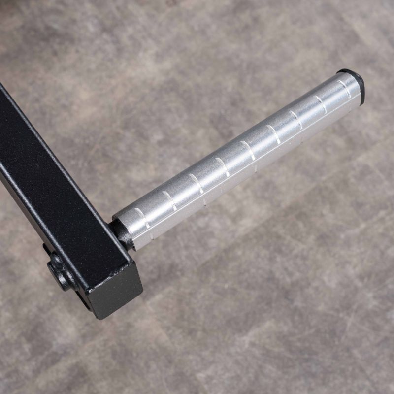 - На подвижных рычагах для работы со свободными весами установлено два литых хромированных накопителя из толстостенной стальной трубы для дисков с посадочным диаметром 50 мм.