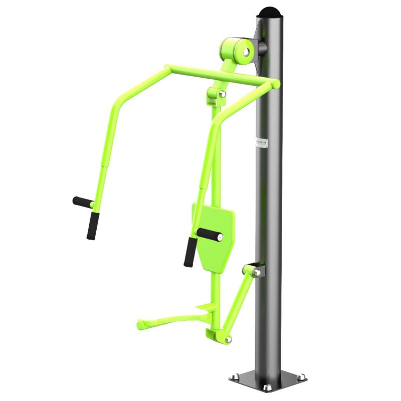 Позволяет развивать грудные мышцы, плечи и трицепсы посредством отталкивания рукояток вперёд. Две пары рукояток дают возможность варьировать хват и акценты нагрузки. Благодаря комфортной посадке и амплитуде движения, работе с собственным весом, тренажёр подходит как для начинающих, так и для более подготовленных пользователей.